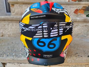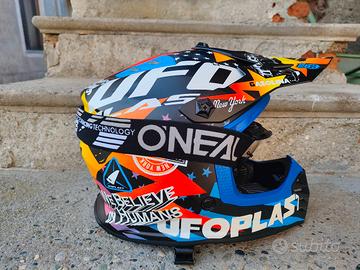 Casco UFO per bambini, taglia M (49/50cm) utilizzato 3 volte da mia figlia per un totale di forse 5 ore. Sfoderabile all'interno per lavaggio. Casco senza una riga, venduto con scatola e sacchetta. La mascherina illustrata in foto non è presente in quanto già venduta.