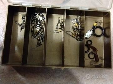 vendo x inutilizzo questa cassettina da pesca con pila incorporata con tutti gli accessori che vedete in foto, piombini, lenza, galleggianti e altro...