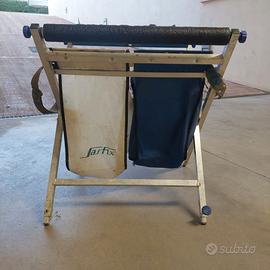 Cavalletto porta-trote con: rullo, porta-esche in metallo, borsa esterna con cerniera e 4 tasche; borsa interna porta oggetti in cordura con cerniera di chiusura; borsa interna retinata asportabile per il pescato ; tracolla.