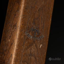 Realizzata negli anni ’30-’40 dalla manifattura Adam di Praga-Kunratice, questa cavallina professionale da ginnastica rappresenta uno dei più significativi esempi di attrezzatura sportiva dell’epoca. La struttura è in legno massello con gambe inclinate e rinforzi in ferro, regolabile in altezza tramite sistema telescopico a perno. Il corpo è rivestito in cuoio originale, con maniglie metalliche sagomate, e riporta i marchi autentici “ADAM PRAHA” e “ADAM” impressi sul legno. Patina e segni d’uso testimoniano la sua autenticità e lo rendono un pezzo di grande valore storico e collezionistico, ideale sia per ambienti sportivi che come elemento di arredo vintage e industriale.