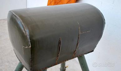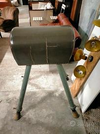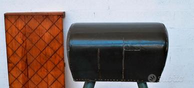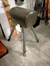 Speciale cavallina per ginnastica con tre piedi originali e uno sostituito (disponibile anche la pedana in legno intarsiato funzionante).