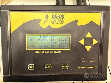 Centralina MPS per ricariche Nitrox e Trimix. Sensori da sostituire. - Centralina MPS per ricariche Nitrox e Trimix. Sensori o2 da sostituire. Permette di sfruttare le bombole di o2 e di Elio fino agli ultimi bar di pressione. Massima percentuale di ricarica delle bombole Nitrox 40%. - Rampa per stazione di ricarica ossigeno sia per travaso diretto che con uso di centralina mix gas. Composta da 3 ingressi con fruste (2 fruste in dotazione) in treccia di acciaio per le bombole Ossigeno oppure di Elio. Una uscita con serpentina in rame, rubinetto, sfiato, manometro 250 bar classe 1 e frusta in treccia di acciaio con attacco DIN 200. Una uscita per centralina, con rubinetto, sfiato e riduttore di pressione. - Analizzatore DE-OX. Tutto funzionante.