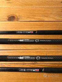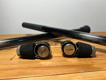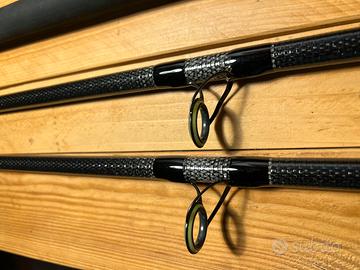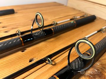 Canne per la pesca a surfcasting o competizioni di long casting con anellatura specifica per il mulinello rotante. Lunghezza 13,6 piedi ( senza reducer) Cast 125-225 grammi di potenza Sono corredate di reducer attivo originale , coasters Century originali e foderi originali . Le canne non presentano segni di usura sono due pezzi di collezione personale , ovviamente sono state usate solo su prato per provarne l’azione e confermarne l’immensità della loro potenza e reattività. Vengono vendute solo in coppia vista la rarità e la numerazione di produzione in serie sarebbe un delitto dividerle . Sono disponibile a spedire costo da concordare .