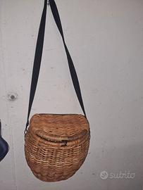 Descrizione: Vendesi cestino tradizionale in vimini intrecciato a mano, ideale per la pesca alla trota o per la raccolta di funghi e castagne. O anche nell'orto per raccogliere frutta o verdura tenendo le mani libere.