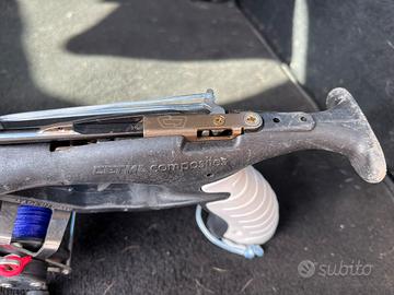 Vendo per passaggio a misura più lunga. Cetma shark72 con mulinello originale cetma (e non quello in foto) monta elastici sigal sub extreme 16mm e sagole di rinvio in dynnema sk75 e mimentica artigianale. Il fucile comprende pure la configurazione originale con i doppi 14mm e le sagole. Prezzo non trattabile e spedizione a carico dell’acquirente.