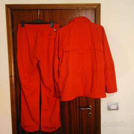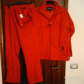 Il completo unisex Chervò con tecnologia Aqua-Block, rosso, sopragiacca tg. 50 e soprapantalone tg. 48, è un capo d'abbigliamento tecnico ad alte prestazioni, ideale per le attività all'aria aperta in caso di maltempo.