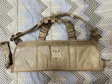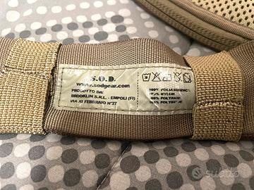 Chest Rig a molle interamente in Cordura 1000D in perfette condizioni indossato solo 2 volte!! Molto confortevole e versatile grazie alla particolare configurazione. Tutta la superficie frontale è a molle compatibile. Ai lati sono presenti 2 tasche a basso profilo. Sul davanti è presente una comoda tasca con interfaccia stretch. La parte che aderisce al corpo è costruita in comodo airnet ad alta tenacità che crea un grande tascone lungo tutta la struttura. Questo tascone è ottimo per l’immagazzinamento dei materiali di back-up grazie anche ai numerosi scomparti e frazionamenti elasticizzati presenti all’interno. I comodi spallacci a X sono piatti e imbottiti con airnet e sulla parte superiore sono dotati di numerose asole a molle compatibili e asole elasticizzate per la ritenzione dei cavi degli apparati elettronici. ❗️PREZZO TRATTABILE❗️
