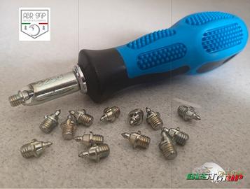 IL KIT COMPOSTO DA 14 CHIODI + 1 CHIAVE DI MONTAGGIO CON IMPUGNATURA