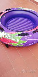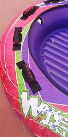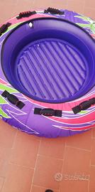 ciambella da traino gonfiabile per 3 persone, diametro 170 cm. Provvisto di 8 maniglie tientibene, costato 360 euro. È sufficiente barca o gommone con 40 Cv. prezzo trattabile