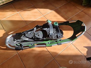 vendo ciaspole mai usate di ottima qualità e fattura, con ganci in plastica telaio in metallo e ramponi per perfetta aderenza. adatte a Scarponi e doposci, circa 1 kg l'una. inclusa borsa per il trasporto.