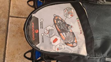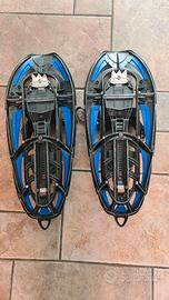 Ottime ciaspole, usate poco. Caratterizzate da un sistema anti-ribaltamento integrato, attacco castor special con chiusura frontale rapida, taglia regolabile grazie alla pratica leva sulla talloniera, fissaggio del collo del piede con passante imbottito e regolabile con cricchetto. Sono dotate di ramponi anteriori con griffa a tre punte posizionata nella parte frontale dell’attacco, ramponcini posizionati sulla superficie inferiore della racchetta e alzatacco. Sono adatte per misure dal 34 al 48, peso max 100 kg. Dimensioni: 24x64 cm. Inclusa la sacca porta racchette.