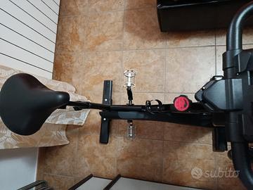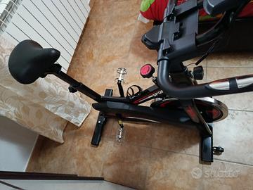 Volano:Dotata di un volano pesante da 20 kg che offre una sensazione di pedalata realistica. Regolazioni: Sella e manubrio completamente regolabili (verticalmente e orizzontalmente) per un comfort ottimale e per adattarsi a utenti più alti. Console:Include una console LCD che visualizza metriche chiave dell'allenamento come tempo, velocità, distanza, calorie e pulsazioni (con fascia cardio venduta separatamente). Resistenza e trasmissione: Sistema di resistenza a frizione con controllo manuale della tensione. Trasmissione a catena per un'esperienza simile alla guida su strada. Design: Struttura robusta e compatta, ideale per l'uso domestico. Dotata di ruote per un facile trasporto e stoccaggio. Specifiche fisiche:Pesa circa 46,5 kg e supporta un peso massimo utente di 125 kg.