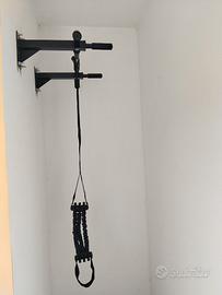 Cinghia elastica INNSTAR per trazioni assistite, praticamente nuova. Sistema con 3 elastici regolabili (circa 25 kg ciascuno) per scegliere il livello di assistenza. Si aggancia facilmente a qualsiasi barra da trazioni tramite moschettone. Ideale per imparare le trazioni, aumentare le ripetizioni o ridurre il carico sulle spalle. Completa di manuale originale.