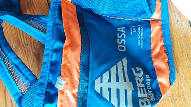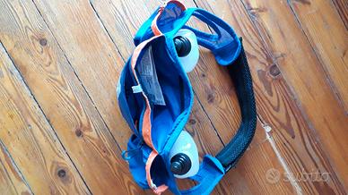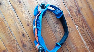 Cintura idrica marca Berg con due portaborracce in rete e due tasconi centrali sovrapposti, uno con cerniera e uno con velcro .