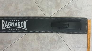 Marca Ragnarok, cintura in pelle bovina taglia S (lunghezza 90 cm circa) con chiusura a cricchetto regolabile, realizzata a mano in alta qualità.
