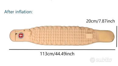 Cintura lombare gonfiabile con cinghie regolabili e airbag per un supporto lombare personalizzabile e massimo confort. Realizzata in materiale sintetico traspirante ,con design ergonomico pensato per migliorare la postura durante sport e attività quotidiane . Elegante e aderente , perfetta per ogni occasione ,dotata di fibbie robuste e tessuto traspirante per la massima comodità e durata