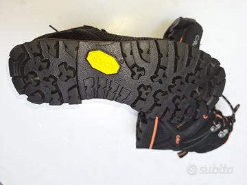 Modello MOON MID WMN TREKKING SHOE WP NUOVE MAI USATE, SCATOLA INTEGRA Tomaia in pelle scamosciata e tessuto Kevlar antiabrasione Membrana impermeabile ClimaProtect Puntalino per la protezione del piede Supporto posteriore in gomma per la stabilita e il controllo della caviglia Suola Vibram 'Tsavo 1206' con compound XS TREK Colore Nero con inserti arancio Vendo al 50% del prezzo d'acquisto