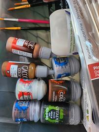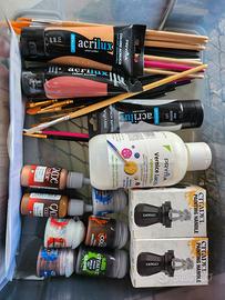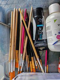 set colori acrilici nuovi, alcuni colori citadels, vari pennelli e 2 poggia miniature