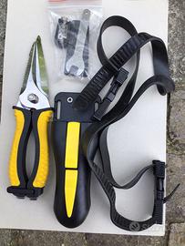 Coltello con funzione forbice taglia sagole per attività subacquea.