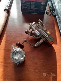 Mulinello Cardinal 502 con 6 bb, 2 bobine 1 in alluminio +1 carbonio con capacità 165m/ 0.22, manico effetto legno, con bottone automatico, antiritorno instant, peso 303gr, ratio 5.1:1. Perfetta combinazione per la pesca spinning pesante, con prestazioni massime top quality, prodoti nuovi di negozio., mai usati ad un prezzo imbattibile.