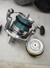 Canna maver MV R pari al nuovo 470cast 120 con doppio vettino( 50-100g), Mulinello shimano spin joy 30 no drag super aero con doppia bobina di cui una con PE 0.8 daiwa , borsone surfcasting trabucco competition che necessita di aggiusti cerniera . In tutto solo scambio a mano 200 € non trattabili non spedisco