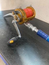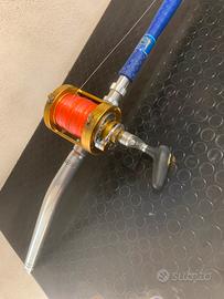 Vendo combo canna e mulinello da drifting al tonno. Canna Mast fish bonaire 30/50 lb acid con manico curvo Alps Mulinello Tica st 668 R imbobinato con treccia 100lb e finale seaguar pink label 0.74