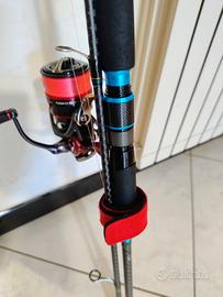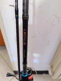 Combo formata da Daiwa legalis squid 5/21 gr. Egi 2,5 3,5. Mulinello Daiwa fuego 3000C con pomello gomexus e stand reel gomexus. Condizioni ottime, solo qualche segno di appoggio.