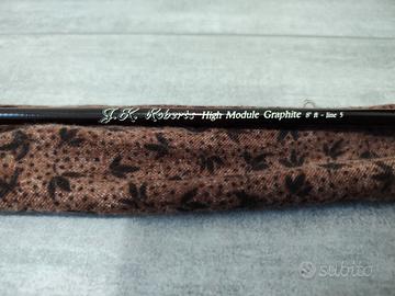 vendo canna da mosca 9 ' coda 5 j.k roberts completo di fodero in tessuto ,aggiungo mulinello bluefox code 3-5 e coda cortland dt5f (nuova).