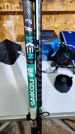 pari al nuovo, canna dipartita in carbonio 450, Yuki H2 anelli fuji attacco fuji , completa di custodia originale imbottita.. mulinello colmic actarus doppio bobina con lenza nuova.. una 022 con shock 060.. l'altra 040 con shock 065.. euro 200.00