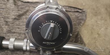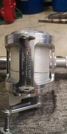 Combo per pesca al tonno composta da mulinello Alutecnos Albacore 50 silver imbobinato da poco con asso tripla forza 0,67 e canna Rainshadow 30/50 con passanti Aftco montata da Italo Busi.