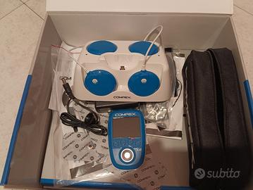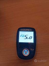 Compex Fit 5.0 Elettrostimolatore blu/bianco + diversi Elettrodi nuovi varie misure (5x5 cm e 5x10 cm).