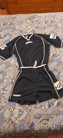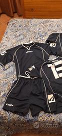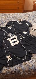 8 completi calcio più 2 maglie nuovi mai usati blu con inserti e numeri bianchi.