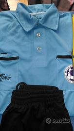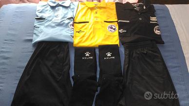 Vendo diversi completi estivi da arbitro di calcio o futsal dell'Olanda di diversi colori ed in ottime condizioni . Sono tutti della kelme o della klupp di taglia L o XL ma vestono benissimo per un 46-48 Il completo del colore che preferite lo vendo a 30 euro e la sola maglietta a 15 euro. Sono in tessuto tecnico, facile da lavare e senza necessita di stiratura. Chi fosse interessato ad acquistare in blocco offro 7 magliette, 2 pantaloncini e 2 calzettoni a 100 euro. In tutto sono: 2 magliette nere 2 magliette gialle 2 magliette azzurre 1 maglietta rossa 2 pantaloncini neri 2 calzettoni neri. Tutto originale kelme e klupp olandese