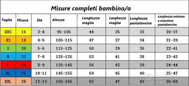 Taglia dai 4 ai 13 anni (vedi tabella nelle foto)