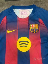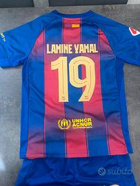 Completino Barcellona Lamine Yamal Originale Vendo perché a mio figlio non sta, c’è scritto taglia 24 ma veste grande, tipo 4/5 anni.