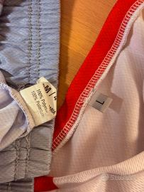 I pantaloncini coordinati sono bianchi con grafica abbinata sul fronte e fascia elastica in vita. La taglia dei pantaloncini è M, mentre la canotta riporta taglia L.