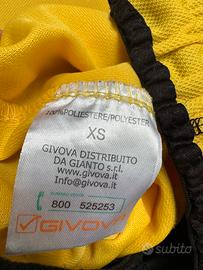 Completo calcio t-shirt e pantaloncini giallo marca Givova tg. Xs come nuovo