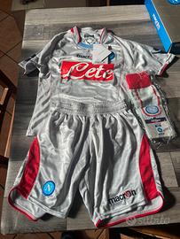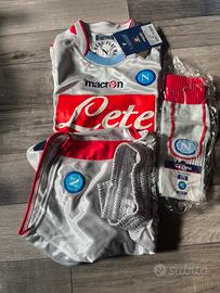 Completo calcio Napoli per bambini, tg XS, eta dai tre a 5 anni, nuovo con scatola, colore grigio e rosso.