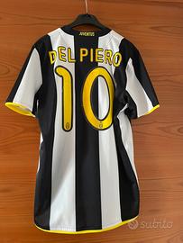 Questo è il kit completo da casa della Juventus della stagione 2008-2009, prodotto da Nike. La maglia presenta le classiche strisce bianconere con il logo Nike giallo e lo sponsor principale "New Holland". Il kit include anche i pantaloncini bianchi abbinati con dettagli gialli e neri. Si tratta di un articolo vintage molto ricercato dai collezionisti, spesso associato a giocatori leggendari come Alessandro Del Piero. Il design è caratterizzato dalla tecnologia Nike FIT per la traspirabilità
