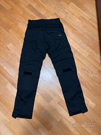Pantalone: 7 tasche dotate di zip sia orizzontale che verticale, ginocchiere integrate, sul retro del ginocchio presenta velcro per stringere e tenere in posizione le ginocchiere e nelle parti di ginocchio e in basso alla schiena possiede un elastico per agevolare i movimenti, evitando che il pantalone si possa strappare o essere scomodo.