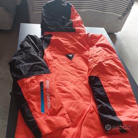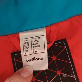 Completo da sci Decathlon due pezzi con giacca color arancio e nero e cerniere az zurre. Usato due volte in buonissime condizioni. Pantalone nero e rifiniture bianche con bretelle regolabili. Rifinito molto bene