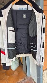 Giacca sci HOTSTUFF tg 54, cappuccio rimuovibile con cerniera, tasca ski pass sulla manica sinistra con cerniera, prese aria laterali con cerniera, 3 tasche sul davanti con cerniera, 2 tasche interne (1 per telefono e 1 per occhiali/berretto), maniche con polso regolabile e ghette antivento. Misura busto cm 59, misura manica cm 67.