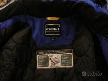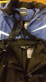 COMPLETO DA SCI GIACCA E PANTALONE - ANNI 13/14 - ALTEZZA CM 164 (DATI ETICHETTA CAPI) - MARCA ICEPEAK. GIACCA CON CHIUSURA CERNIERA NASCOSTA COMPLETA DI CAPPUCCIO IMBOTTITO E RIMOVIBILE, POLSINI TECNICI E REGOLABILI CON STRAPPO. CERNIERE TASCHE E PORTA SKIPASS A CHIUSURA TERMICA. COLORE BLU CHIARO CON PARTICOLARI BIANCHI. PANTALONE COMPLETAMENTE NERO CON BRETELLE REGOLABILI. OTTIMA FINITURA ED IMBOTTITURA DI QUALITÀ REALIZZATA CON MATERIALE ICE TECH (VEDI FOTO ALLEGATE) – MAI USATA PER PROBLEMI DI TAGLIA. PRATICAMENTE NUOVA.
