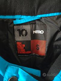 Completo pantaloni e giacca della Nitro. Pantaloni 6 tasche e apertura interno cosce per aria azzurri taglia S, giacca vari colori taglia XS con aperture sotto braccio per ricambio aria. Vendibili anche separatamente totale 100 euro altrimenti 50 euro al pezzo.