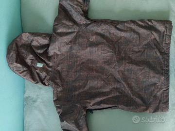 Pantaloni imbottiti colore nero, giubbotto colore marrone con comode multi tasche e taschino sulla manica per ski pass, completo di cappuccio.
