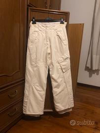 Completo da sci da donna misura piccola color bianco e marrone usato una volta. I pantaloni sono lunghi 97 cm
