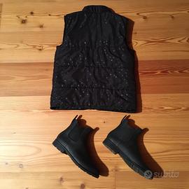 Completo #equitazione #unisex , composto da piumino senza maniche nero con pois tono su tono, taglia 8/10 e stivaletti in gomma n.37 .
