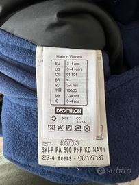 Vendo Completo Giacca e Salopette Decathlon wed’ze per snowboard e sci, bambino o bambina. La Giacca taglia 4 anni 98 / 104 cm è anche reversibile ed ha il taschino per skipass. La Salopette è 3 / 4 anni 91 / 104 cm ed è regolabile.