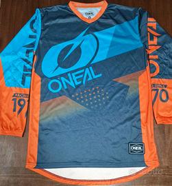 Vendo completo O'neal maglia taglia M a manica lunga leggera e traspirante con schienale lungo e pantaloni taglia 30 con chiusura a cricchetto.