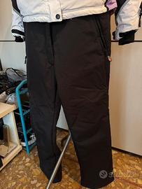 - Pantaloni colore nero sci/snowboard isolanti, logo nell'area della caviglia sinistra, tasche con cerniera e chiusura con bottoni e cerniera, vita con elastici sui fianchi.